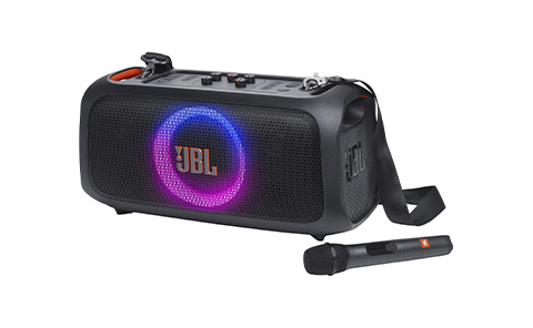 The PartyBox On-The-Go delivers JBL Pro Sound with 100 watts of power, offering crisp highs, pure mids, and deep bass. Dazzle guests by syncing preset lights to the music, or turn up the karaoke fun the included wireless. With a built-in bottle opener, shoulder strap, and up to 6 hours of playtime, it's ready for any party