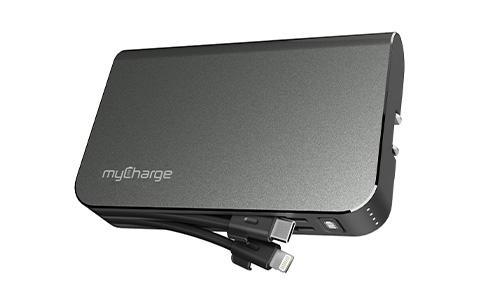 Stay powered up with the HubMax Turbo 10050 mAh Rechargeable Power Bank, offering a fast charge and up to 6x extra battery life. The integrated wall prongs plug directly into an outlet, eliminating extra cords. Includes built-in Apple Lightning and micro-USB cables with a shared 3.4A output.