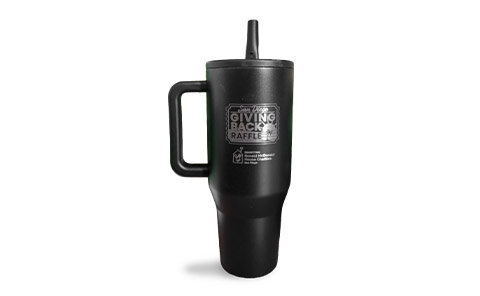 The Giving Back Raffle etched HydroJug® keeps drinks cold for hours with double-wall insulation. Featuring a sleek black finish, durable design, and exclusive etched Giving Back Raffle Logo, this 32oz tumbler is perfect for hydration at home, work, or on the go. Read more